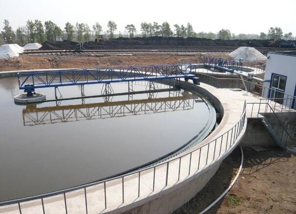 工作桥由安装周边的驱动机构带动,绕安装在池中心支墩上的中心支座旋转,安装在工作桥上的刮泥板在旋转过程中,将沉降在池底的污泥刮向中心的集泥坑。同时,液面上的浮渣在浮渣刮板和周边挡渣堰形成的渐缩区域内集中,由浮渣耙扒到集渣斗,排出池外。